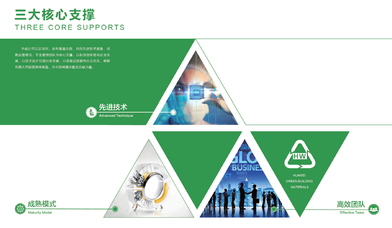 • 2007年2007年,深圳市政府同意由華威公司在塘朗山建筑廢棄物受納場內(nèi)投資興建首個(gè)建筑廢棄物綜合利用示范項(xiàng)目,將受納場內(nèi)的建筑垃圾轉(zhuǎn)化為再生建材。年處理產(chǎn)能150萬噸,建筑廢棄物轉(zhuǎn)化率超過95%。